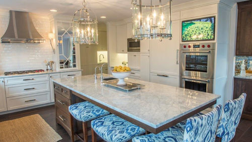 Home built in 1984 completely gutted to studs. Designed the new living space to be open and welcoming. Created open plan with eat in space around large island. Kitchen adjacent to dining area. Biggest challenge was reworking the ceiling without designing new trusses.